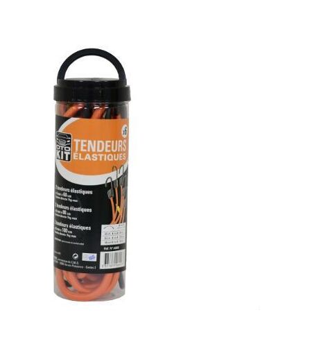 Lot de 6 tendeurs élastiques en bocal 2 tendeurs élastiques 8 mm x 60 cm ( max 90 cm ) tension directe 7kg maxi 2 tendeurs élastiques 8 mm x 80 cm ( max 120 cm ) tension directe 7kg maxi 2 tendeurs élastiques 8 mm x 100 cm ( max 150 cm ) tension directe 7kg maxi Homologués TUV/GS ...