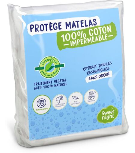 Sweet Night - Protège matelas 140x200 cm Greenfirst® Actif 100% Naturel et Anti-Acariens Alèse Imperméable Molleton 100% Coton
