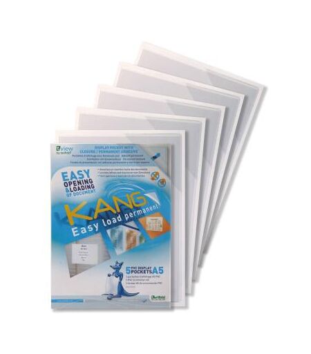 en PVC rigide, dos adhésif permanent, ouverture sur 2 côtés, peut contenir jusqu'à 10 feuilles, utilisation à la verticale ou l'horizontale, transparent contenu : 5 pièces (194680) ...
