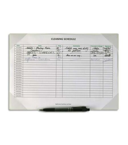 Sachet de 2 poches en PVC rigide 10/100e Adapté aux feuilles de contrôle de propreté, relevés machine, listes de présence, documents devant être annotés très souvent (Idéal pour les usines, ateliers, portes, tableaux d'affichage, vitres, etc.) Peut être utilisé en portrait ou paysage Maintien parfait du document aux 4 coins du document Ecriture directe sur le support d'affichage sans sortir le document Dos adhésif ...