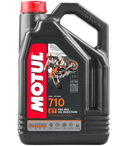 Bidon de quatre litres d'huile moteur 2T Motul pour moteurs performants. ...