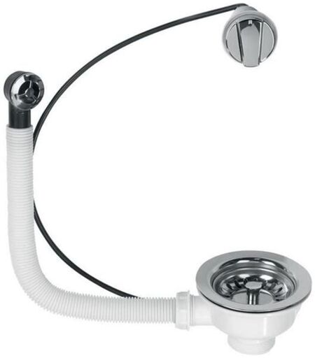 Wirquin Pro - Bonde automatique à commande à câble (diamètre 90 cm) pour évier 1 bac - Blanc