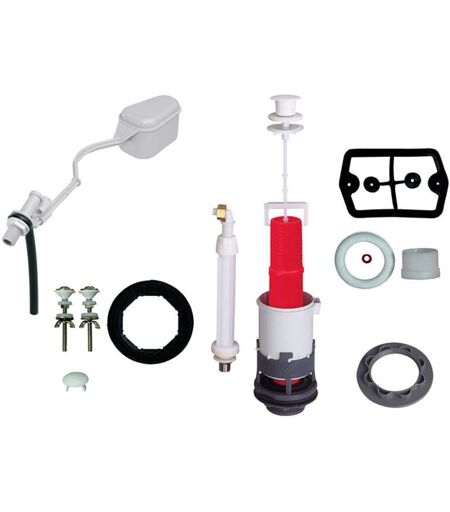Présentation Ensemble complet simple chasse à tirette MXS111 + robinet alimentation F12 Kit spécialement adapté aux céramiques Porcher et Jacob Delafon Rallonge de culot spécial pour fond de réservoir épais Adaptateur pour alimentation basse télescopique Joints spécifiques Porcher et Jacob Delafon Robinet flotteur à levier embout 3/8" en plastique ...