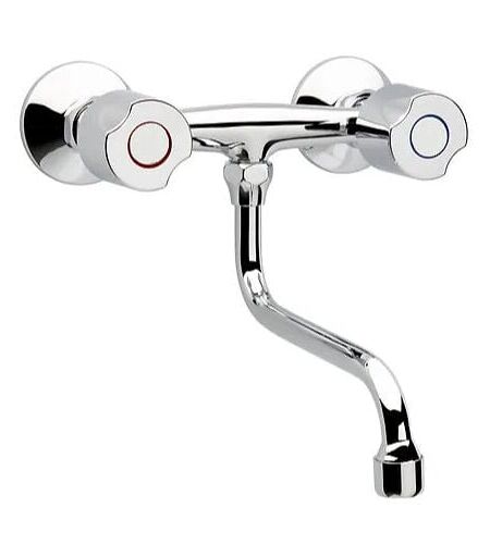 Kramer - Mélangeur d'évier mural chromé avec bec en s mobile.