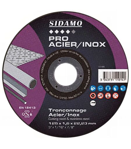 Sidamo - Disque à tronçonner pro acier inox d. 125 x 1,6 x Al. 22,23 mm - Acier, Inox - 10111014