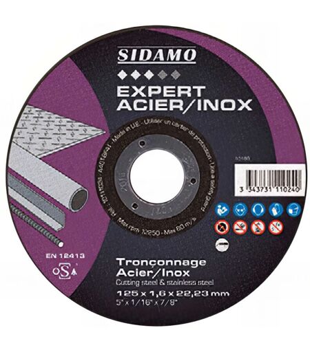 Sidamo - Disque à tronçonner expert acier inox d. 125 x 1,6 x Al. 22,23 mm - Acier, Inox - 10111024