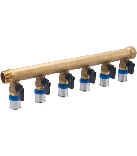 NOYON & THIEBAULT Noyon&thiebault - Collecteur MF20x27 sorties vannes à sertir pour tube multicouche Ø16 - 6 départs