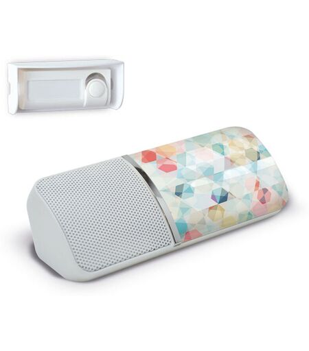 Découvrez le carillon EXTEL Jazzy 100 Kaleidos. Marque : Extel Modèle : Jazzy 100 Kaléidos Couleur : Blanc Motif : Kaleidos Dimensions du récepteur : H. 150 x l. 60 x P. 38 mm Dimensions de l'émetteur : H. 45 x l. 100 x P. 45 mm Portée sans fil : 100 m Fréquence : 433,92 MHz Alimentation requise : Pour le récepteur : 3 piles LR06 AA non fournies Pour l'émetteur : 1 pile CR2032 fournie Fixation : murale ou sur table Sans indicateur de batterie faible Sans porte-étiquettes Ce qu'on aime : Le design du carillon Jazzy Kaléidos Extel donnera une touche colorée à votre déco. Vous pourrez choisir parmi 6 sons différents pour personnaliser votre sonnerie. La petite taille de la sonnette la rend très discrète. Grâce à sa forme, vous pourrez placer le carillon dans un angle sur un mur à la verticale ou à l'horizontale pour s'accorder parfaitement avec votre intérieur et vos envies. ...