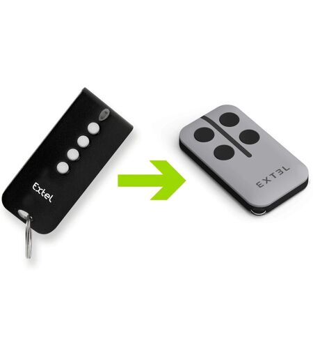 Télécommande Extel Weateam 5 ( nouveau design) pour kits de motorisations EXTEL BORA - GARA - CARA - VERA. Télécommande 4 voies avec une portée d'environ 30 mètres en fonction de l'environnement, Programmation ultra-simplifiée par auto-apprentissage, Code tourant (rolling code) pour une sécurité accrue. Compatible également avec tous les kits EXTEL WEAT V2 - WEAT B2 - VEAT G2 - WEAT C2 et série 2N. ...