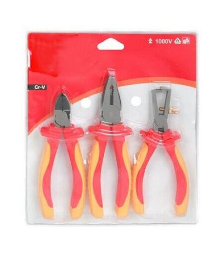 Tec hit 350003 - Jeu de 3 pinces isolées 1000V - En Acier chrome vanadium - Manche ergonomique Bi-matiere