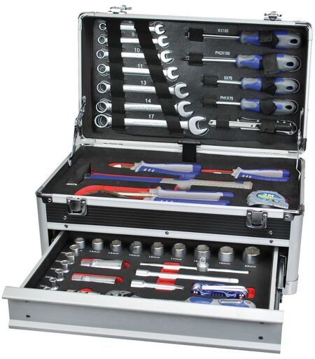TEC HIT 503045 - Caisse à outils en aluminium - 1 tiroir - Avec 45 pièces au Chrome Vanadium - Noir / Alu