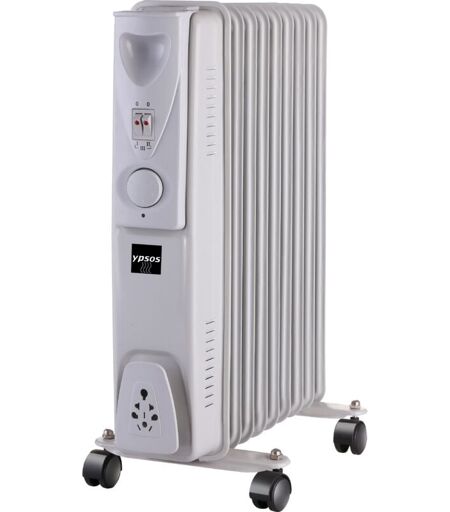 Drexon - ypsos 611200 - Radiateur bain d'huile gris clair 2000W - 40.5x24x54 cm - Thermostat mécanique - Blanc
