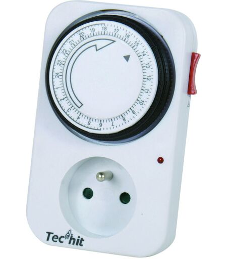 TECH-IT Tec hit 730200 - Programmateur Mécanique Journalier avec Interrupteur - Segment de 30 mn - 3500 w - En abs - Blanc