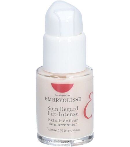 Embryolisse Soin Regard Lift-Intense 15 ml est un soin liftant intensif à la fleur de marronnier qui restructure toute la zone du regard. Il convient à tous les types de peaux, y compris aux contours des yeux sensibles.Il défroisse, comble les rides du contour de l'œil et densifie cette zone particulièrement fine. Sa formule défatigante effet lift réhausse les paupières et estompe les cernes et les poches. Le regard reposé semble agrandi, il retrouve fraîcheur et vitalité.Sans parfum.Testé sous contrôle dermatologique.98% des ingrédients sont d'origine naturelle.Fabriqué en France.Bénéficesl'acide hyaluronique, aux propriétés hydratantes et fixatrices d'eau, actions lissantes et repulpantes,l'extrait de fleur de marronnier Bio, liftant-défatigant,l'extrait de litchi à l'action raffermissante,l'huile d'onagre pour apporter confort, souplesse et douceur.ApplicationAppliquer matin et soir sur le contour des yeux et les paupières. Pour un effet lift-paupières, lisser vers le haut, du coin de l'œil jusqu'à la pointe du sourcil.IngrédientsAqua (Water), Isostearyl Isostearate, Glycerin, Cetyl Alcohol, Butyrospermum Parkii (Shea) Butter, Cetearyl Alcohol, Hydrogenated Coconut Oil, Fructose, Cetearyl Glucoside, 1,2-Hexanediol, Caprylyl Glycol, Carbomer, Xanthan Gum, Aesculus Hippocastanum (Horse Chestnut) Extract, Sodium Hydroxide, Oenothera Biennis (Evening Primrose) Oil, Tocopheryl Acetate, Maltodextrin, Sodium Hyaluronate, Nephelium Lappaceum Leaf Extract, Tropolone, Potassium Sorbate, Citric Acid. ...