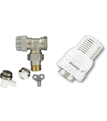COMAP Kit Complet Robinet et Tête thermostatique Senso 1 et accessoires (raccord de réglage, purgeur, robinet de vidange) pour radiateur - M28