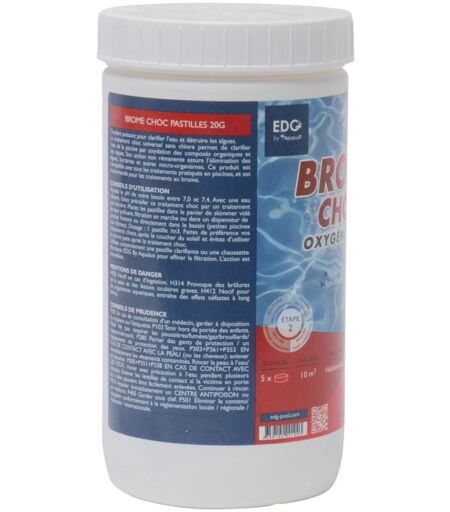 Description générale Oxygène actif oxydant puissant et inodore, compatible avec tous les traitements de piscine, sauf le pHMB. Idéal pour maintenir une eau claire et propre. Spécifications techniques Type de produit : Traitement universel sans chlore Poids : Boîte de 1 kg Marque : Aqualux / EDG Référence fournisseur : 200100 Compatibilité et accessoires Compatible avec tous les traitements sauf le pHMB Installation Utiliser des gants de protection appropriés résistants aux agents chimiques conformes à la norme NF EN374. Porter des lunettes de protection conformes à la norme NF EN166. Utilisation Pastilles blanches solubles pour un dosage précis. Idéal pour traiter l'eau verte ou trouble. Détruit les algues et les bactéries. Clarifie l'eau des piscines sans troubler l'eau. Action rapide sur les composés organiques présents dans l'eau. ...