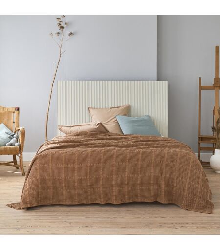Essix Couvre-lit nid d'abeille jacquard en coton, Yogi, Amande 260 x 240 cm unisex