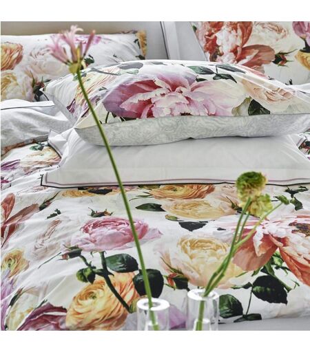 Designers Guild Taie d'oreiller imprimée TOURANGELLE PEONY Blanc en percale de coton unisex