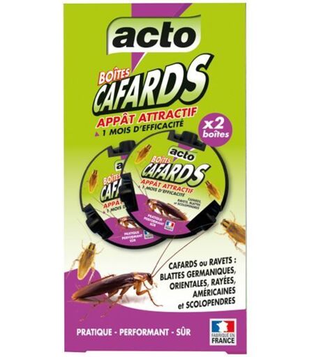 Contre les blattes, cafards, ravets ou les scolopendres. Les boîtes contiennent un appât imprégné d insecticide qui attire les insectes et les empoisonne. Moyen de lutte permanent dans tous types de locaux. Propre et sans odeur .Faciles à mettre en ?uvre , les boîtes appât se placent sur les lieux de passage des blattes et dans les endroits chauds et humides. L'appât est très appètent pendant 1 mois. ...