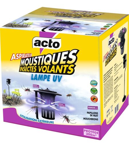 Contre les moustiques, les mouches et les papillons de nuit. Lanterne piège à ultraviolet qui attire les insectes et les aspire dans son bac collecteur ou ils meurent par dessèchement. Protège300m². ÉtancheIPX4.ÉtancheIPX4. Silencieux sans pesticides. ...