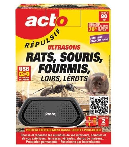ACTO - Acto répulsif ultrasons rats souris fourmis loirs lérots
