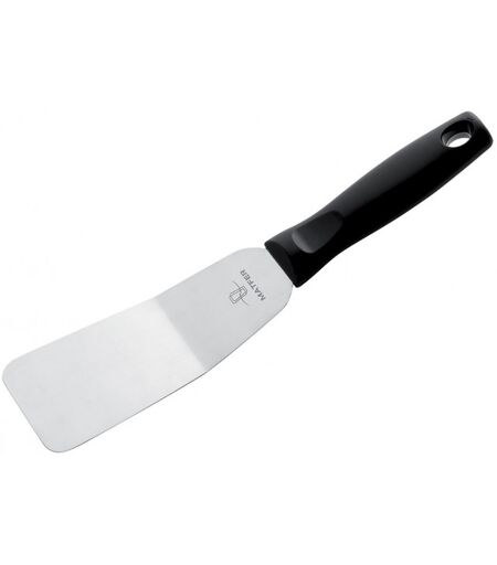 Spatule souple pour servir ou retourner Palette en acier inoxydable de 15cm Surface souple de forme coudée Longueur totale : 27.8cm - Largeur palette : 60mm Manche noir en PP surmoulé antidérapant ...