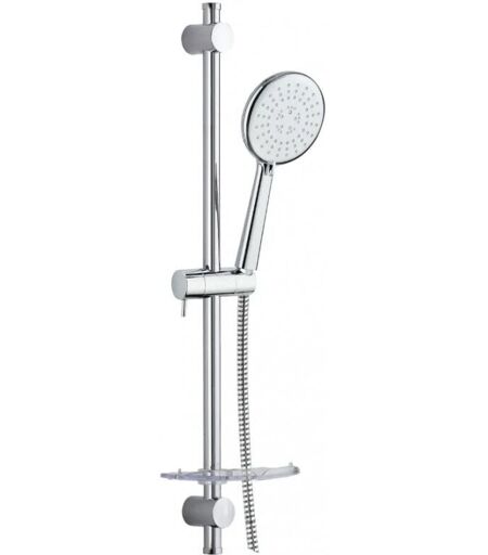 Valentin - Ensemble barre de douche d. 25 mm l. 600 mm, 3 jets d. 120 mm avec porte savon