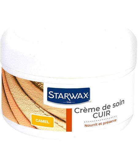 Caractéristiques : * Contenance : 150 mL * Redonne souplesse et éclat * Cuir camel ou tons similaires * Type de supports : cuirs desséchés (ameublement, intérieur de voiture, maroquinerie, vêtements et accessoires) * Ne convient pas au daim et nubuck FICHE TECHNIQUE ► (https://www.toutbrico.com/img/cms/Fiche-technique/Starwax/FT_STARWAX_CREME_RENOVANTE_CUIR.pdf) ...