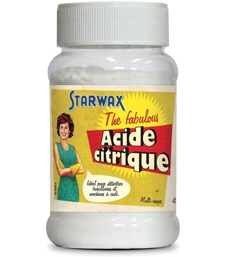 Idéal pour détartrer les bouilloires et cafetières* Dissout la rouille sur le métal Origine minérale, pur à plus de 99% Ingrédient 100% d'origine naturelle : labellisé Ecocert Utilisez-le seul, ou associé à d'autres ingrédients pour créer vos recettes ! Détartre les cafetières*, dissout la rouille sur le métal ... Naturellement présent dans le citron, l' Acide citrique d'origine minérale est l'ingrédient détartrant par excellence. Pur à plus de 99%, biodégradable et non toxique pour l'homme, cette fine poudre blanche s'utilise dans de nombreuses recettes. On l'emploie pour : Raviver les robinetteries et carrelages entartrés Entretenir des bouilloires ou cafetières * Détartrer les toilettes Protéger la vaisselle contre le calcaire L'acide citrique a également de formidables propriétés anti-oxydantes qui lui permet d' éliminer la rouille efficacement, sur les textiles et surfaces métalliques. *Sauf contre-indication du fabriquant D'origine 100% naturelle : labellisé Ecocert La garantie ecocert est un label d'origine française qui garantit un impact moindre sur la planète. Un cahier des charges strict impose des obligations en termes de choix d'ingrédients, de formulation et de production. Parmi ces obligations, on retrouve notamment celle des matières premières issues de ressources renouvelables et une interdiction de la plupart des ingrédients pétrochimiques. De plus, son emballage recyclable est composé de plastique 100% recyclé. Comment utiliser l'acide citrique ? Pour détartrer une bouilloire Faites-vous un thé Laissez juste assez d'eau pour recouvrir la résistance et les parties entartrées Ajoutez une cuillère à café d'acide citrique Remettez en marche puis rincez Pour détartrer la machine à laver Versez 6 à 8 cuillères à soupe directement dans le tambour de la machine. Faites tourner sur le programme le plus élevé, machine à vide ! Pour enlever les dépôts de café de thé ou de vin sur la vaisselle Dissolvez 1 cuillère à café d'acide dans un verre d'eau tiède, et versez ce mélange dans le support à nettoyer Frotter les parties tachées puis rincez et séchez Si les taches sont tenaces, laissez tremper toute la nuit dans la préparation Recommandations Ne pas appliquer sur l'aluminium ...