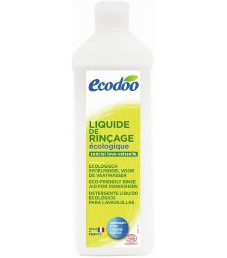 Liquide de rinçage pour lave vaisselle, rinçage plus rapide et brillant éclatant ! Flacon 500 mL. Spécificités du produit : - rinçage plus rapide et brillant éclatant - ne laisse pas de traces sur la vaisselle après séchage - efficace avec une eau calcaire ou une eau douce - tous les composants sont autorisés pour le nettoyage des ustensiles et récipients en contact avec les denrées alimentaires (J.O du 27.11.99) - sans colorant ni parfum de synthèse - convient aux fosses septiques Conseils d'utilisation : - agiter avant chaque utilisation - remplir régulièrement le réservoir de liquide de rinçage. - recommandation importante : régler le débit de rinçage de votre machine en fonction de la dureté de l?eau - pour une efficacité optimale, utiliser les pastilles lave vaisselle Ecodoo Les gestes écologiques : pour réduire l?impact environnemental, respectez les doses d?utilisation recommandées. Précautions d'emploi : - tenir hors de portée des enfants - en cas de contact avec les yeux, laver immédiatement et abondamment à l?eau claire et consulter un spécialiste - en cas d?ingestion, consulter un médecin et lui montrer l?emballage ou l?étiquette Composition : >30% eau, 5-15% acide citrique, éthanol végétal, glycérine végétale, Substance naturellement contenue dans l?huile essentielle : limonène. Les agents de surface sont d?origine végétale. * ingrédients issus de l?Agriculture Biologique. 0.1% du total des ingrédients sont issus de l?agriculture biologique Détergent écologique contrôlé par ECOCERT Greenlife F.32600 Fabrication : France Conditionnement : Flacon de 500mL ...