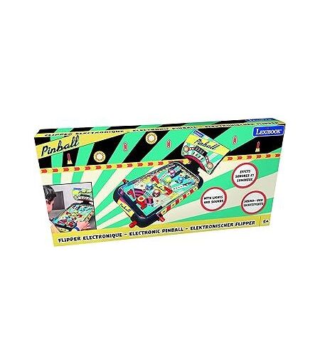 Un flipper de table électronique avec un superbe design! Jouez seul ou défiez vos amis. Score numérique: affichage du score le plus élevé sur l'écran LCD. Musique, effets sonores et lumineux comme dans un vrai jeu de flipper. 4 flippers (leviers) et 5 bumpers (obstacles). 1 balle a l'intérieur. Bouton de réinitialisation et possibilité de couper la musique. Alimentation : 3 piles LR14 / C de 1,5V (non incluses) ...
