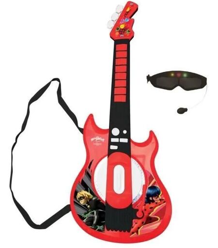 Une incroyable guitare électronique Ladybug avec lunettes et micro Découvrez la musique tout en s'amusant et avec style grâce à cette guitare électronique Ladybug accompagnée de lunettes avec micro intégré ! Modes de jeu Mode 1 : En appuyant sur les touches de la guitare, l'enfant peut jouer des solos de guitare saisissants. Mode 2 : En appuyant sur les touches de la guitare, l'enfant peut jouer de vraies notes et composer ses propres mélodies. Caractéristiques Effets lumineux spectaculaires sur le corps de la guitare. Pouvoir jouer de superbes solos de guitare avec la barre de swing au centre et des mélodies de démonstration. Lunettes avec micro intégré pour chanter avec élégance tout en jouant. Inclut un câble aux-in pour connecter votre appareil audio (non inclus) au micro et chanter directement vos chansons préférées. Taille : 24*5*59 cm Volume réglable avec 3 niveaux différents. Conçu et développé en Europe ...