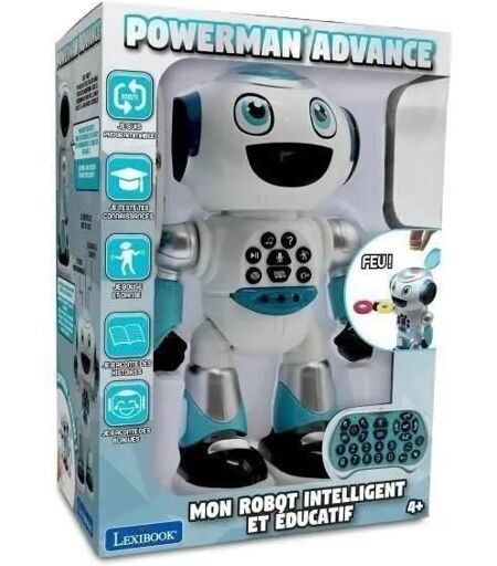 Le robot Powerman Advance est un robot intelligent et éducatif ! Un robot avec de nombreuses fonctions pour les enfants à partir de 4 ans qui vont adorer s’amuser avec. Vous pourrez le diriger dans toutes les directions grâce à sa télécommande. Avec une fonction programmation qui permet de créer de nouvelles séquences de mouvements et de nouvelles danses. Il dispose également d’une fonction " Fabrique tes histoires " qui permet de générer jusqu’à 10 000 histoires inédites. Il raconte aussi des blagues et des Fables de la Fontaine. Avec une fonction enregistrement qui permet à Powerman de répéter tout ce que dit l’enfant avec sa voix de robot et une fonction Karaoké pour créer ses chansons en enregistrant un message que le robot va répéter en chantant et dansant. C’est aussi un robot qui permet d’apprendre de façon ludique grâce aux nombreux quizz éducatifs. Il tire des disques en mousse que votre bambin aimera attraper et vous pouvez le contrôler d’un geste de la main. Le robot Powerman Advance est le compagnon interactif qu’il faut pour votre enfant. Avec ses nombreuses fonctions, il saura le divertir, le faire rire mais aussi lui apprendre de nouvelles choses. Nécessite 5 piles LR06 non incluses. ...