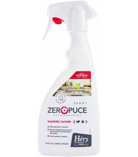 Le spray environnement Zéro Puce Héry , vous permettra de traiter votre habitat ainsi que celui de votre animal.Il élime les larves de puces ainsi que les puces adultes.Efficace pendant 2 semaines. Zéro puce spray environnement Hery pour traiter votre habitat Action insecticide et larvicide Elimine radicalement les puces et leur larves de l'environnement de l'animal Peut être utilisé dans la maison, la voiture, les paniers de votre chien ou chat... Elimine les puces grâce à l'action de la perméthrine Elimine les larves de puces grâce à l'actoin du pyriproxyfène Elaboré sous contrôle vétérinaire Efficacité 2 semaines - Renouveler l'opération toutes les 2 semaines si nécessaire. Traite une surface de 25m² Conditionnement : spray de 500 ml Livraison en France métropolitaine uniquement Insecticide TP18 Utilisez les biocides avec précaution. Avant toute utilisation, lisez l'étiquette et les informations concernant le produit. Avant toute utilisation, assurez vous que celle-ci est ...