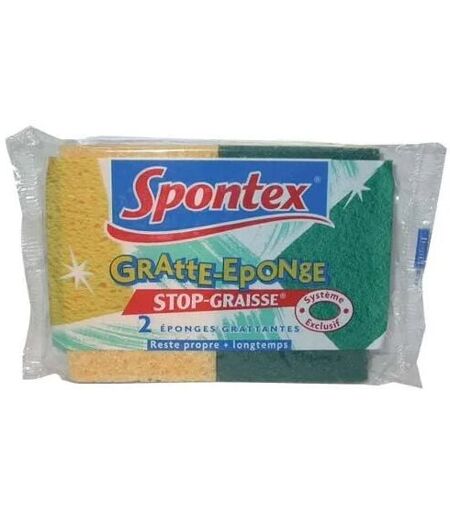 Spontex Eponge végétale grattante stop graisse, 2 pièces
