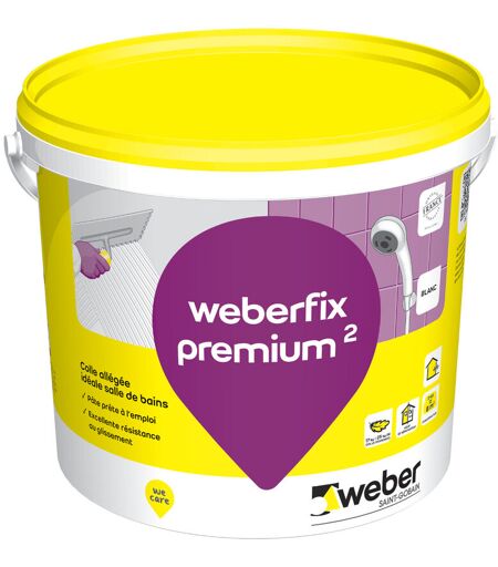 Weber Saint Gobain - Colle pour carrelage 17kg, Blanc, en pâte pour murs intérieur et extérieur prête à l'emploi, spéciale salle de bain, Weberfix