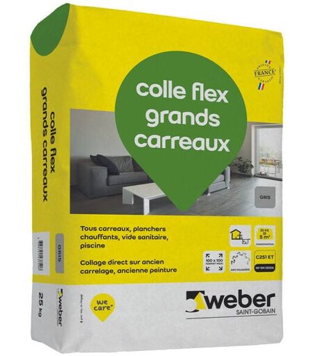 Weber Saint Gobain - Colle carrelage Grands Carreaux et planchers chauffants, Gris, 25kg, mortier, haut rendement, spéciale grands formats, Colle
