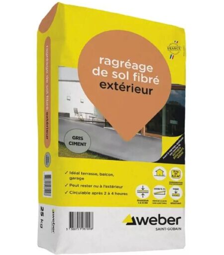 Weber Saint Gobain - Ragréage de sol fibré extérieur 25 kg - Mortier Idéal terrasse, balcon, garage Weber