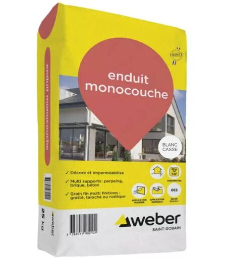 Weber Saint Gobain - Enduit monocouche de façade extérieur blanc cassé 25 kg - d'imperméabilisation et décoration façades - Weber