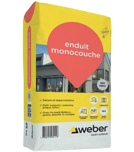 Weber Saint Gobain - Enduit monocouche de façade extérieur gris perle 25 kg - d'imperméabilisation et décoration façades - Weber