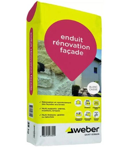 Weber Saint Gobain - Enduit de rénovation façade extérieur blanc cassé 25 kg - d'imperméabilisation et décoration façades - Weber