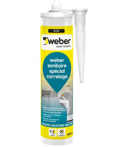 Weber Saint Gobain - Weber Mastic, Silicone, Noir, Salle de Bain, Cuisine, Carrelage, Béton, Bois, Anti-Moisissures, Joint sanitaire étanche, Forte