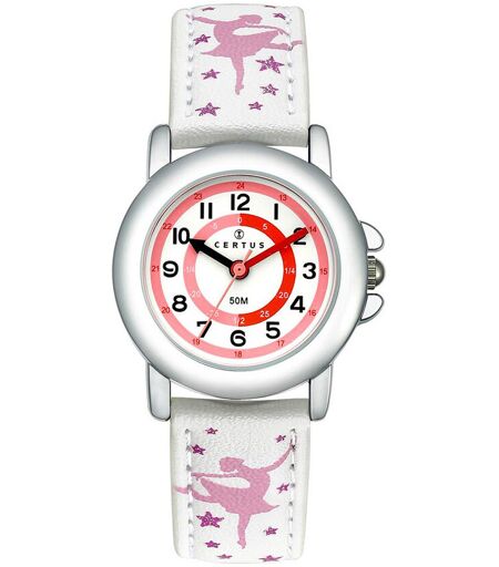 Montre Fille Certus 647614 - Bracelet Cuir Blanc avec Motifs Danseuses unisex