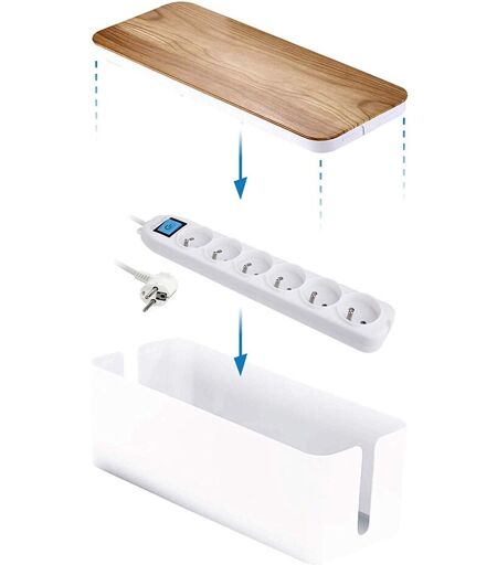 Electraline 300173 Boîte de Rangement pour câbles + Bloc Multiprise 6 Prises 16A, 1,5 MT, Blanc, Marron