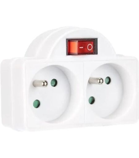 Electraline 531192 Adapteur Fiche Multiprise Biplite avec Interrupteur 2 Prise 16A, Blanc