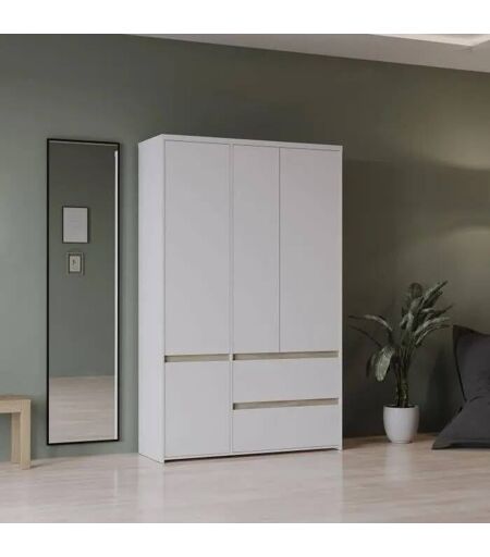 L'armoire CLYDE est le choix parfait pour une chambre bien organisée. Avec ses 4 portes, 2 tiroirs spacieux et 4 étagères, elle offre un rangement optimal. Son design en chêne Kronberg et blanc mat apporte une touche moderne et chaleureuse. Le dessus Hollowcore de 38 mm assure robustesse et élégance. Poignées discrètes, barre de penderie solide, fabrication française de qualité. Un meuble complet et stylé pour un intérieur harmonieux. ...