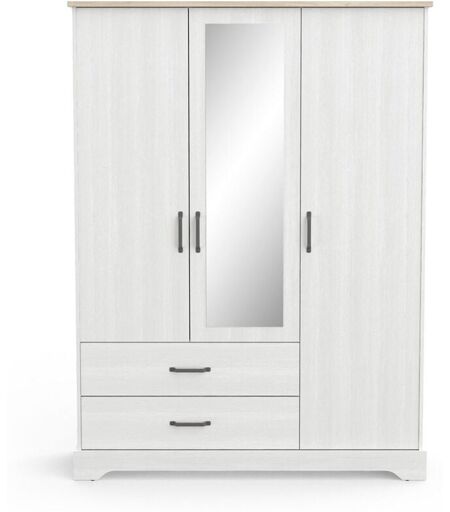 Calicosy - Armoire 3 portes 2 tiroirs 148 cm décor chêne et blanc - kotty