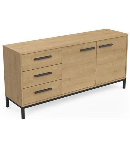 Maisonetstyles Buffet 2 Portes 3 Tiroirs Décor Chêne Et Noir - Hami