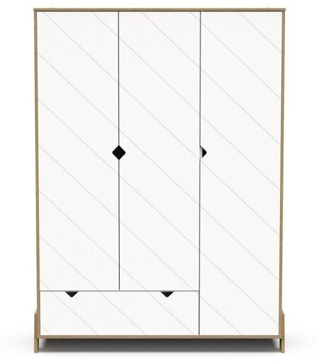 Calicosy Armoire 3 Portes Et 1 Tiroir Décor Blanc Et Chêne Hamilton H188,1 Cm