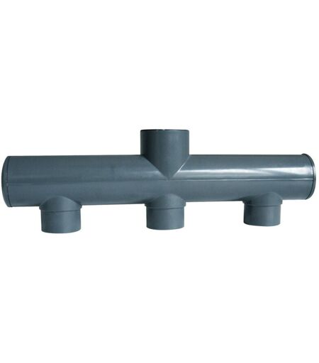 Pièce plomberie pour piscine. Collecteur d'aspiration 3 entrées/1 sortie PVC Ø 63/50 mm - AquaZendo. Fabriqués en PVC PN16 BARS (résistant à une pression maximale de 16 bars). Livré avec 2 bouchons d'extrémité. Caractéristiques techniques Couleur : Gris Marque : FITT Matière(s) : PVC Raccords : 63 mm Type de produit : Collecteur d'aspiration ...